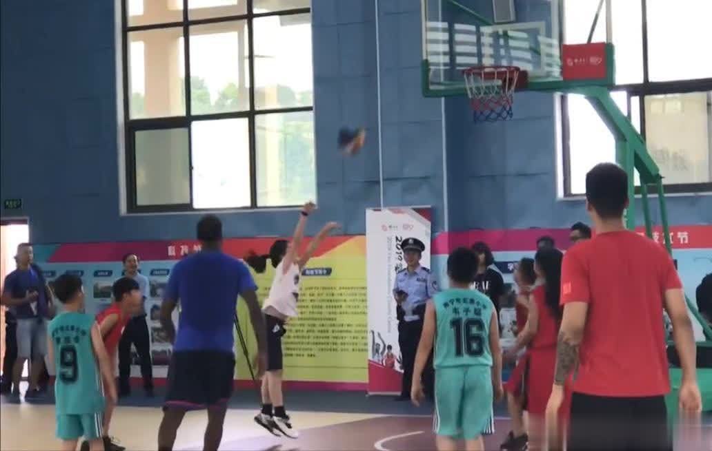 在学校的篮球场上,姚沁蕾参与了小球员们的对抗比赛,中国男篮球员沈梓捷还曾两次有意识地突分给她。