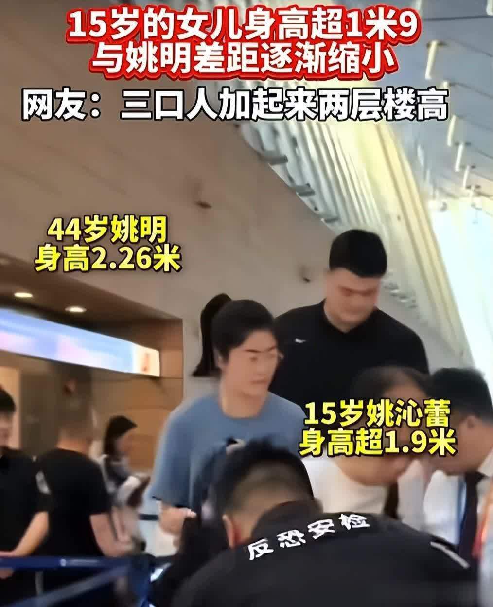 根据官方数据,姚明的身高是2.26米,而15岁的姚沁蕾已经超过了父亲的肩膀,身高达到1米9,远超同龄的孩子,甚至比不少成年男性还要高。